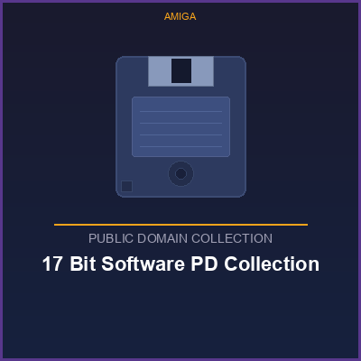 Die vollständige 17 Bit Software Public Domain Bibliothek für den Commodore Amiga. 17 Bit Software war eine der größten und bekanntesten PD-Bibliotheken Großbritanniens mit über 8.508 Disketten.